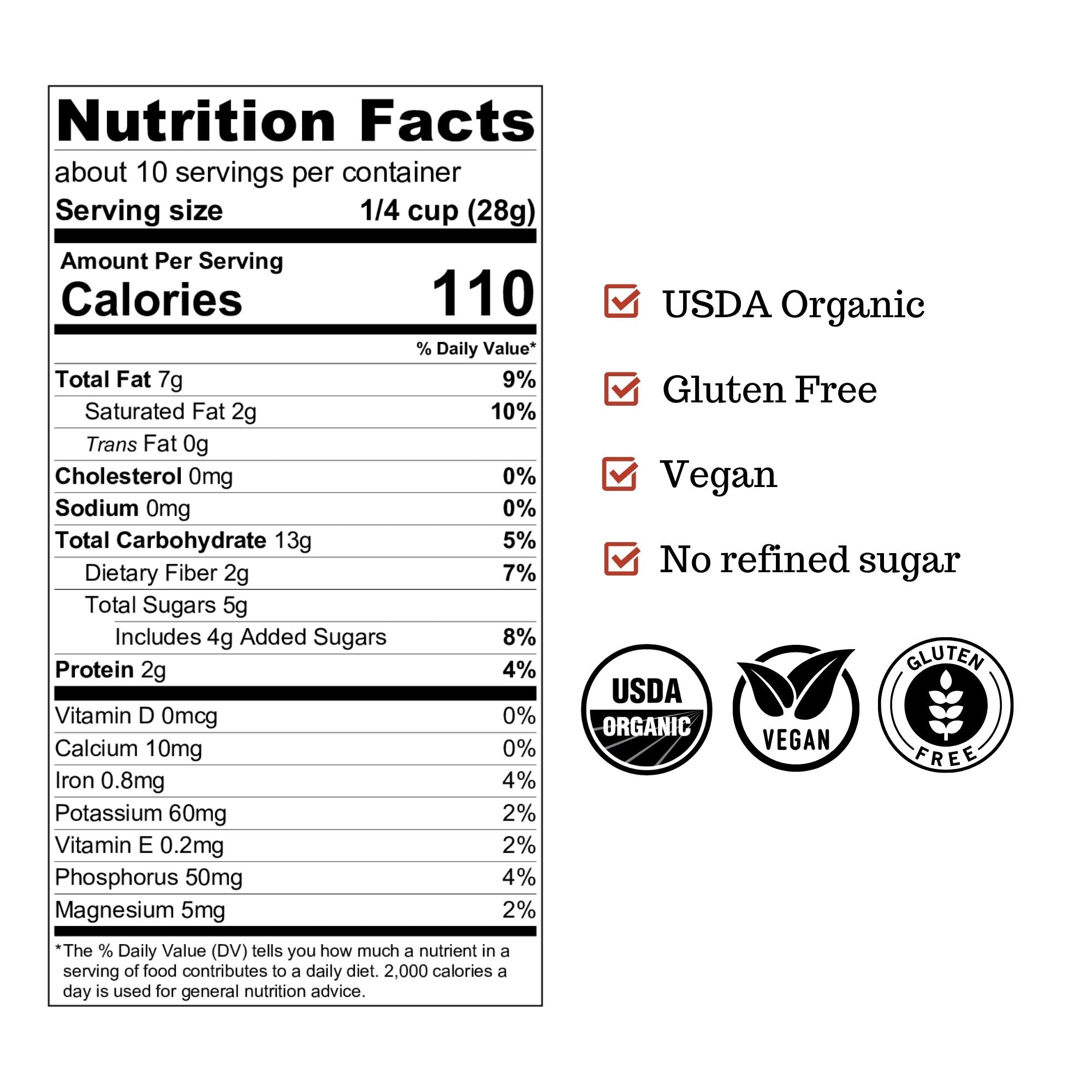 Whether you’re enjoying them as a snack, dessert, or as a crunchy topping for your favorite treats, these cookies are gluten-free, vegan, non-GMO, and completely free from refined sugar and artificial preservatives.