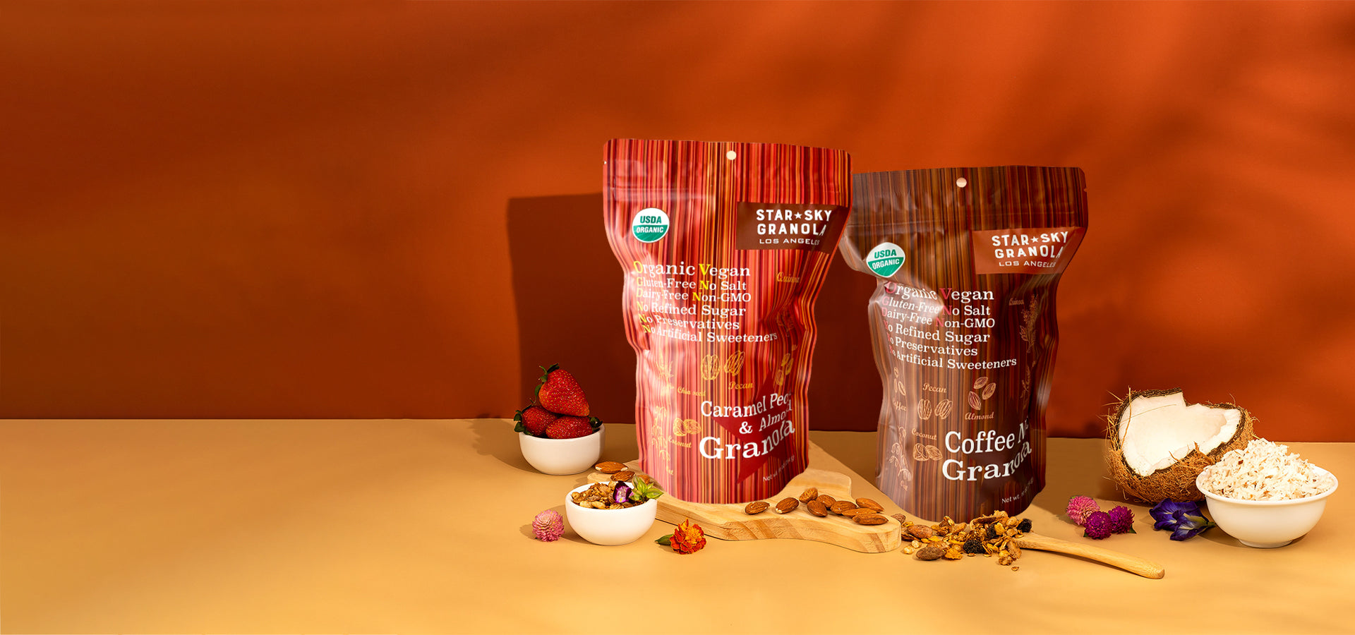 Indulge in our delectable array of organic & gluten-free granola and vegan oat cookies. Each bite is a celebration of wholesome goodness, crafted with care to nourish your body and delight your senses. From the satisfying crunch of our granola to the chewy perfection of our cookies, every product embodies our commitment to quality ingredients and sustainable practices. Treat yourself to a guilt-free snack experience that's as satisfying as it is nutritious.